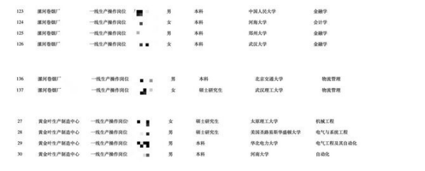据悉,其中“一线生产操作岗位”的拟录用人员,有来自国内的中国人民大学、武汉大学、郑州大学、河海大学等985、211名校,甚至还有美国圣路易斯华盛顿大学的硕士研究生。