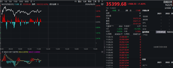 日本日经225指数盘中涨幅一度超过2%,盘中重新回到35000点之上。日本东证指数盘中涨幅也一度超过2%,盘中重新回到2500点之上。