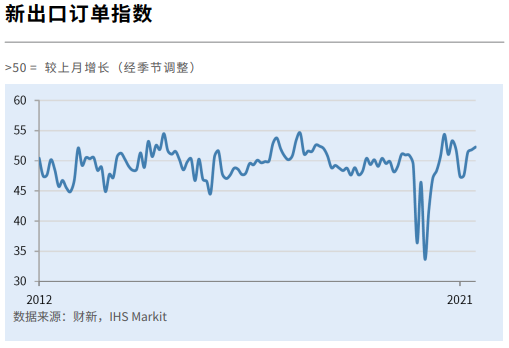 分项数据来看,5月新订单指数录得2021年内高点,新出口订单指数则继续攀升至2020年12月以来高点。