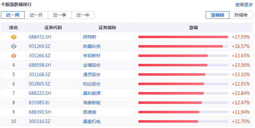 简介证券之星光伏行业周报:中国有色金属工业协会硅业分会数据显示,本周多晶硅价格跌幅收窄,市场成交回暖。中邮证券观点指出,国内需求持续超预期,光伏产业链有望加速出清。...