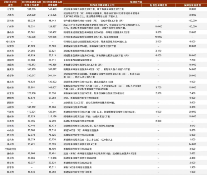 图表:2024各地保障房供应计划