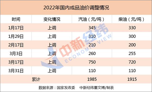 据中新经纬梳理,今年以来,国内成品油价格经历了六轮调整,汽油价格总计上调1985元/吨,柴油价格总计上调1915元/吨,呈现“六涨零跌零搁浅”格局,国内多数地区95号汽油基本迈入“9元时代”。