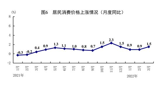 一季度,全国居民消费价格(CPI)同比上涨1.1%。其中,城市上涨1.2%,农村上涨0.7%。分类别看,食品烟酒价格同比下降1.3%,衣着价格上涨0.5%,居住价格上涨1.4%,生活用品及服务价格上涨0.6%,交通通信价格上涨5.5%,教育文化娱乐价格上涨2.6%,医疗保健价格上涨0.6%,其他用品及服务价格上涨0.7%。在食品烟酒价格中,粮食价格上涨1.7%,鲜果价格上涨6.9%,鲜菜价格上涨3.7%,猪肉价格下降41.8%。扣除食品和能源价格后的核心CPI同比上涨1.2%。3月份,全国居民消费价格同比上涨1.5%,涨幅比上月扩大0.6个百分点;环比持平。