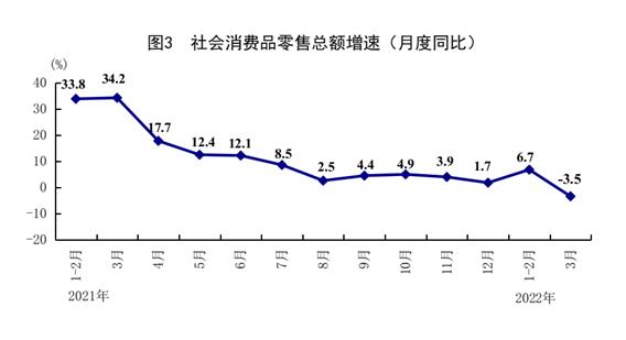 一季度,社会消费品零售总额108659亿元,同比增长3.3%。按经营单位所在地分,城镇消费品零售额94292亿元,增长3.2%;乡村消费品零售额14367亿元,增长3.5%。按消费类型分,商品零售98006亿元,增长3.6%;餐饮收入10653亿元,增长0.5%。基本生活类商品销售良好,限额以上单位粮油食品类、日用品类商品零售额分别增长9.3%、6.6%。升级类商品销售较快增长,限额以上单位文化办公用品类、金银珠宝类商品零售额分别增长10.6%、7.6%。全国网上零售额30120亿元,增长6.6%。其中,实物商品网上零售额25257亿元,增长8.8%,占社会消费品零售总额的比重为23.2%。3月份,社会消费品零售总额34233亿元,同比下降3.5%,环比下降1.93%。